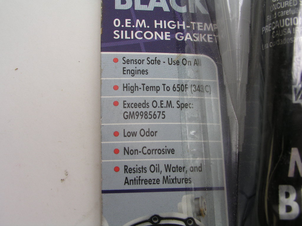 Non-corrosive black RTV silicone, sensor safe, exceeds OEM specifications. 3 oz tube.