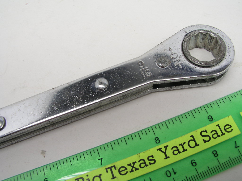 1/2″ x 9/16″ Extra Long Ratcheting Wrench Matco WRXL16182 is a dogbone style that you flip over to reverse direction. It is new, no packaging and not cosmetically perfect. Note the pitted chrome on the 9/16 end.