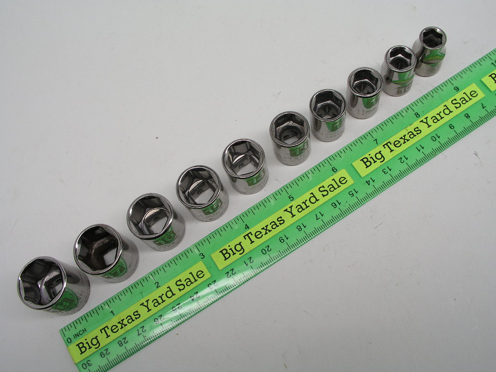 10pc Craftsman 3/8″ Drive Metric Size Socket Set has sizes 9mm through 18mm. Listing as used though some appear to be unused.