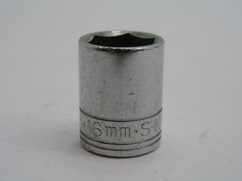 16mm 6pt SK replacement socket with large style logo. New socket with no packaging. Not cosmetically perfect and has handling marks or scratches, and other cosmetic imperfections that do not affect use.
