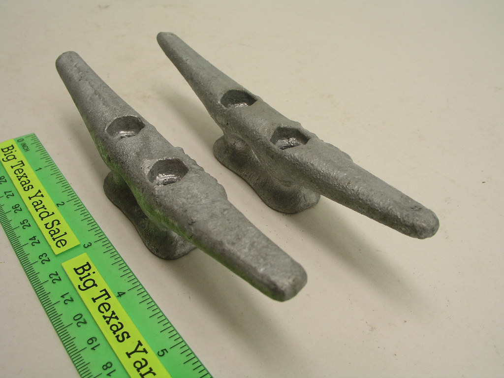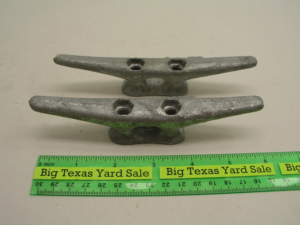 Hot galvanized steel dock cleats with 5/16″ mounting holes. New condition, no packaging.