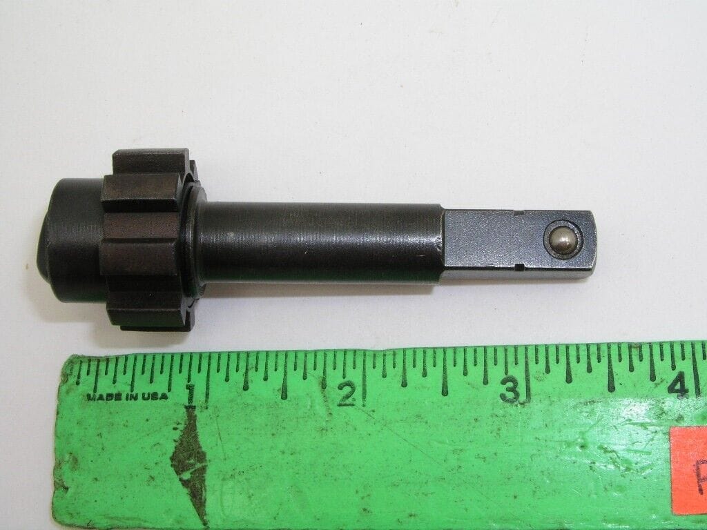 This strange reversible ratchet with an extended 3/8″ drive was originally a replacement part for the Fiskars Sidekick palm ratchet. This nice quality item is new with no packaging, and may have some small cosmetic flaws from storage.