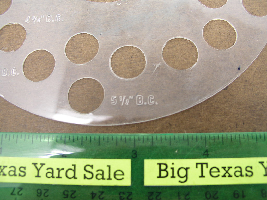 5 Lug Stud Bolt Circle Finder is used to identify the bolt circle on 5 bolt auto wheels. New, no packaging, not cosmetically perfect.