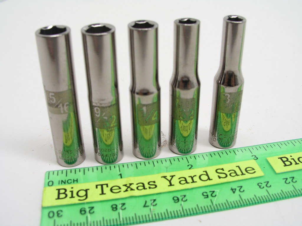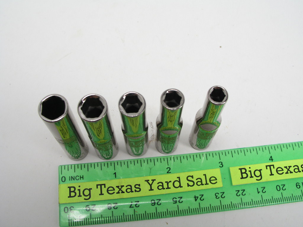 5pc Craftsman 1/4″ Drive SAE Size Deep Socket Set has sizes 3/16 through 5/16″ .  Listing as used though some appear to be unused.