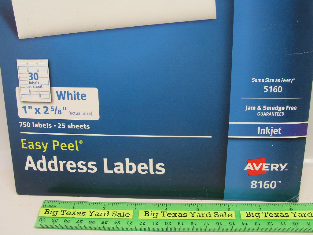 750 Avery 8160 Address Labels in 2 packages of 25 sheets each. Labels measure 1″ x 2-5/8″