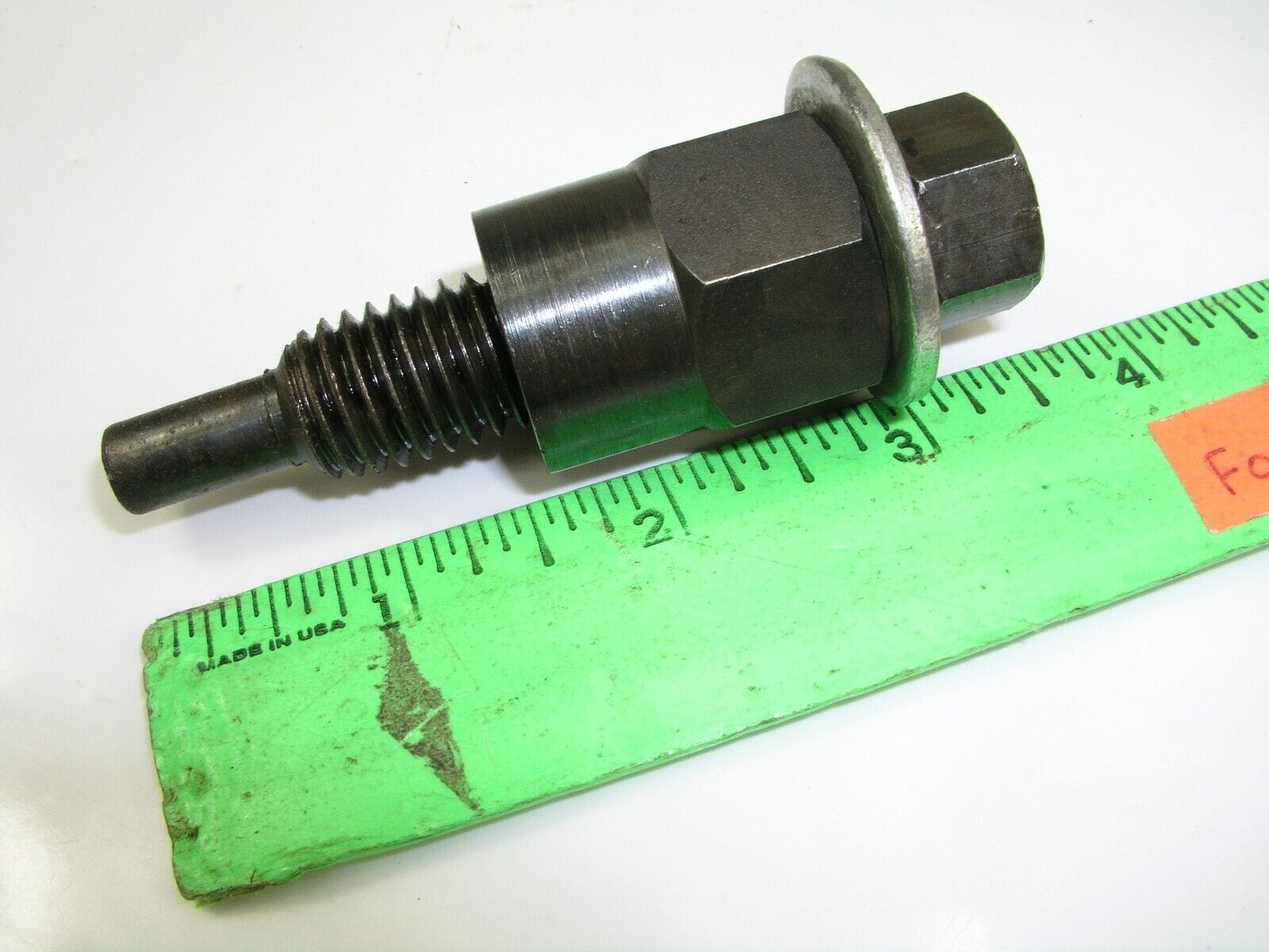 Used to install an AC compressor clutch. The large unthreaded shoulder is 1″ in diameter and the small end has a female thread 8M-1.25.