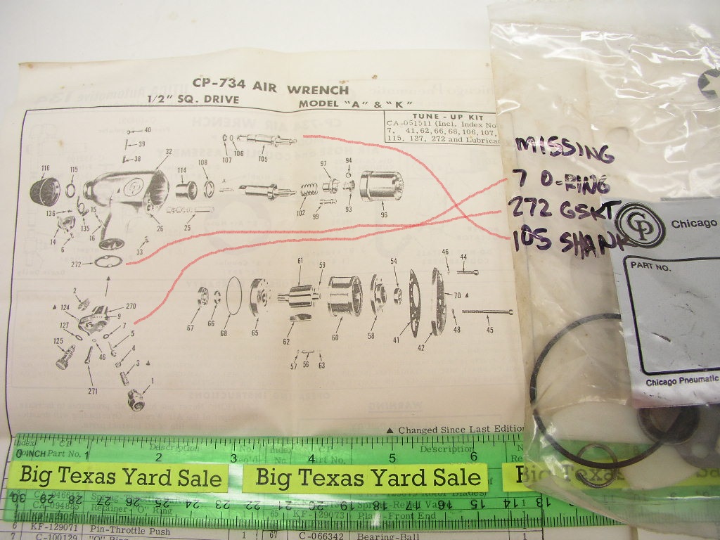 Chicago Pneumatic CP734 Impact Wrench Repair Kit CA-132232 Lot D.   Kit is new but packaging is in poor condition, missing parts.  Includes
