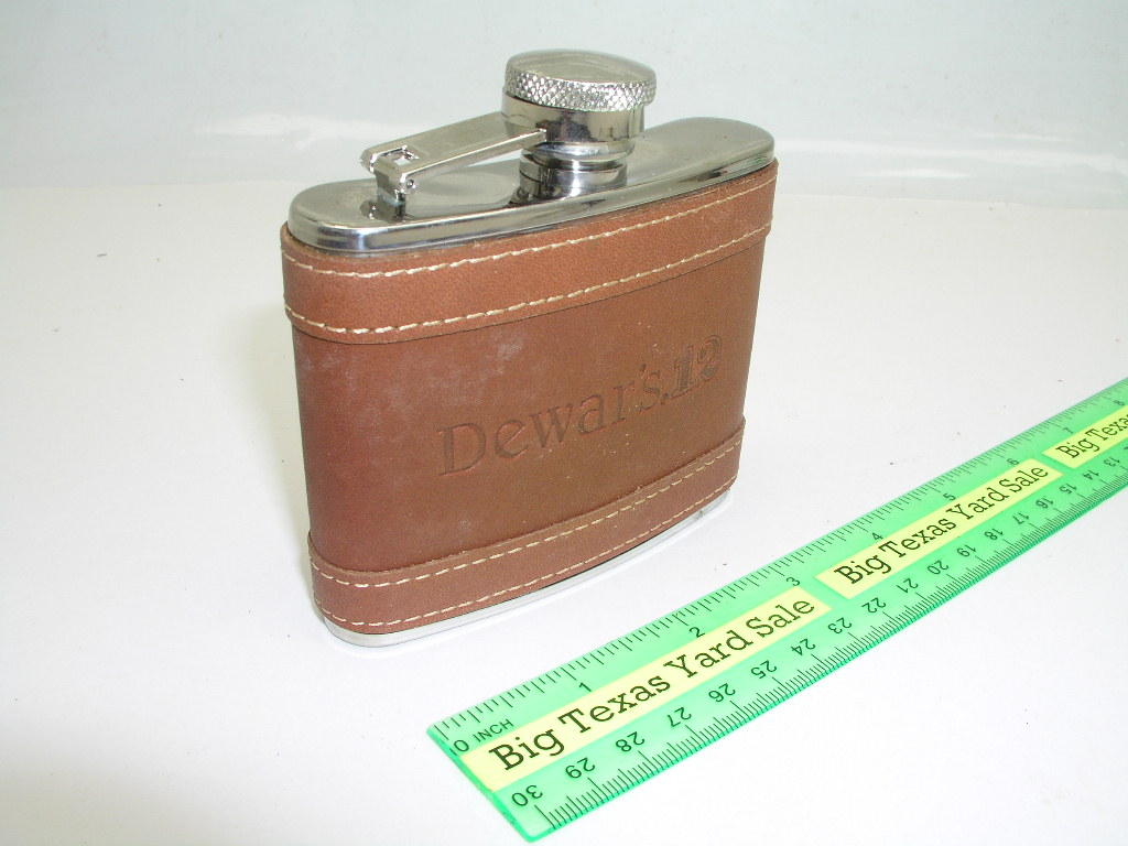 Stainless 4oz hip flask with a leather cover and cap keeper. New, no packaging.