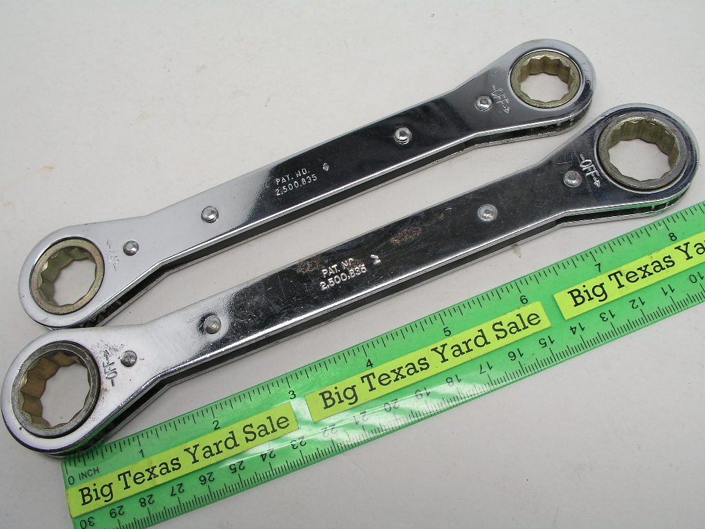 Matco 16mm x 18mm & 19mm x 21mm Ratcheting Wrenches. Dogbone style that you flip over to reverse direction. They are new, no packaging and not cosmetically perfect. Note the rust spots and damaged chrome.