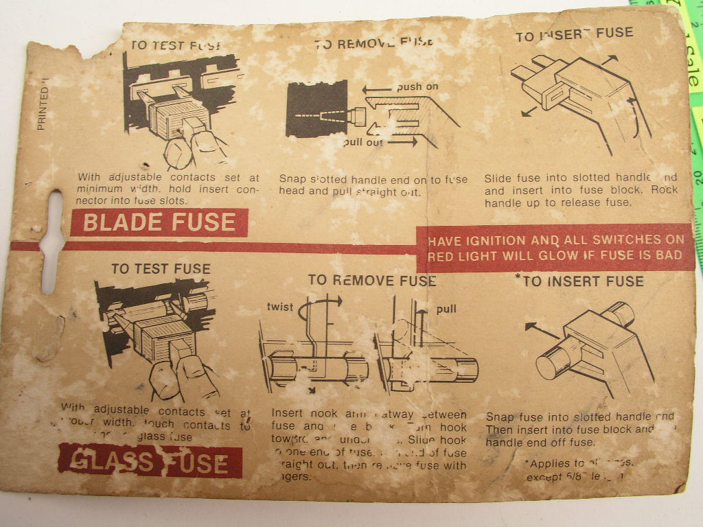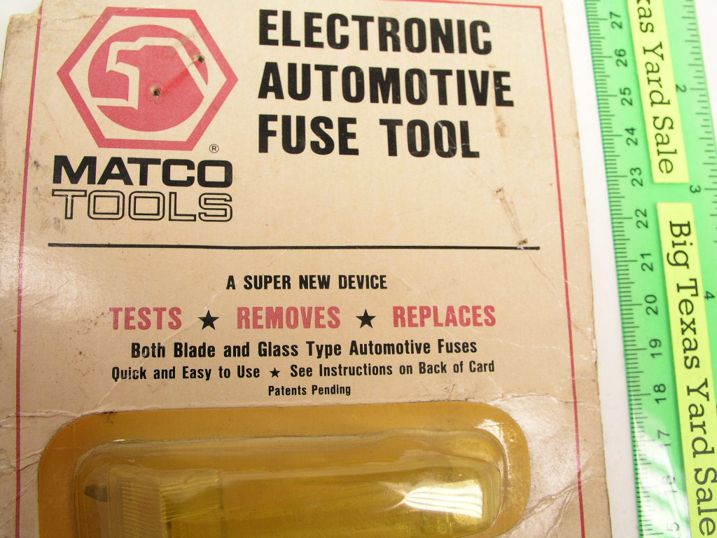 Matco FT1 Electronic Auto Fuse Tester Remover Installer tests and removes/installs both glass and blade type fuses. Item is new but packaging not cosmetically perfect.