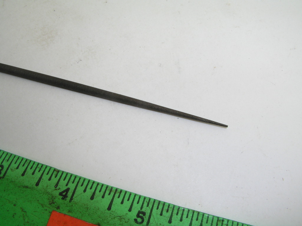 Round tapered file in cut #4. Used, but clean, sharp, with lots of life left.