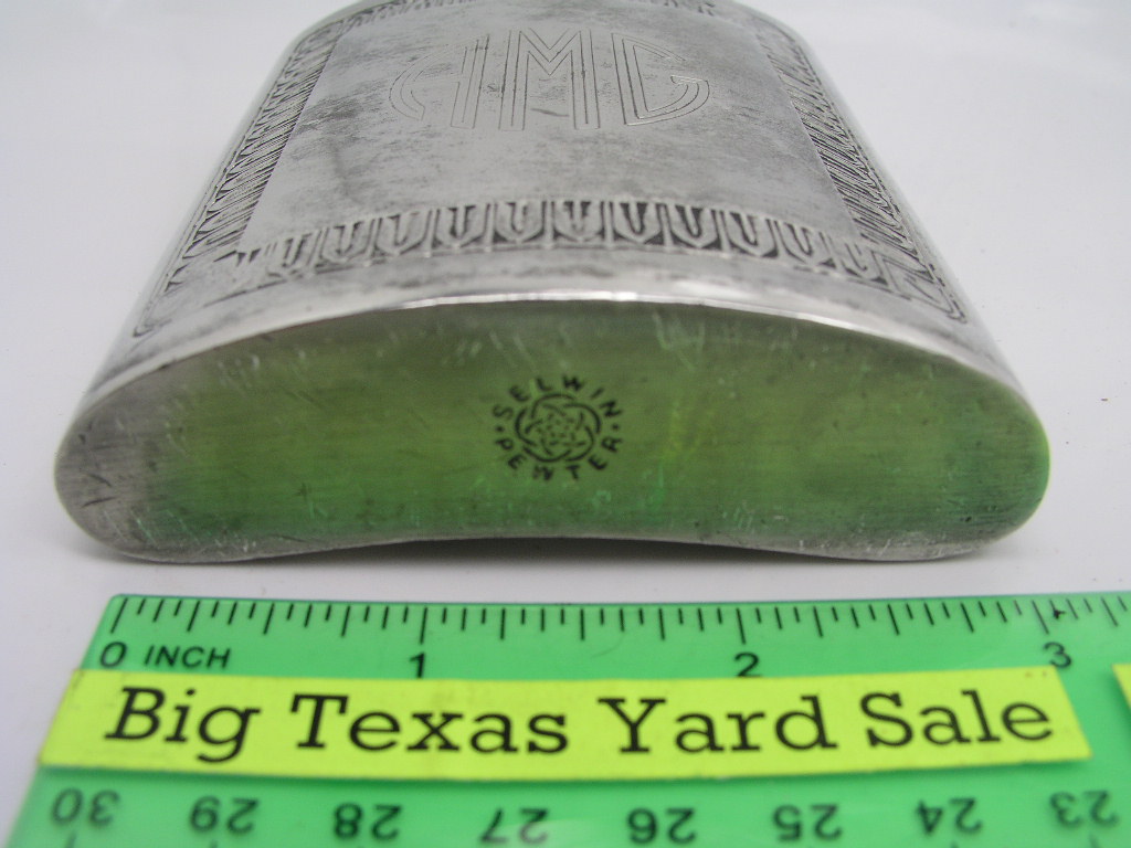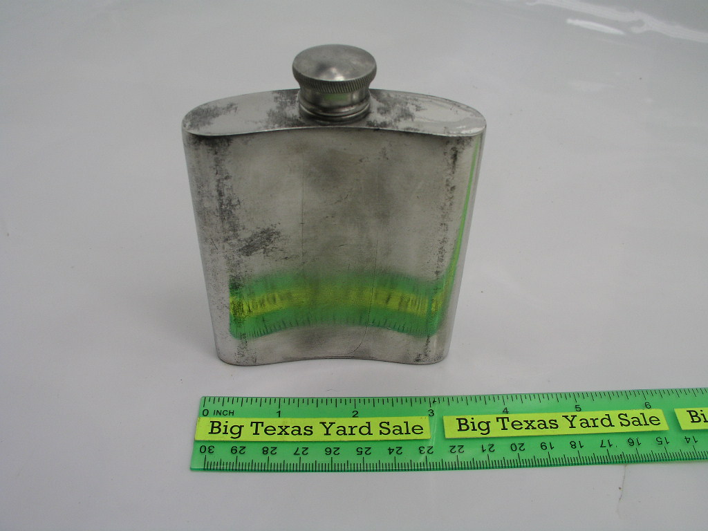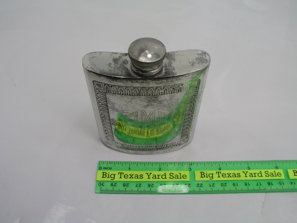 Hip flask with the initials “AMG” engraved. Could be somebodys name or “All Money Gone”.