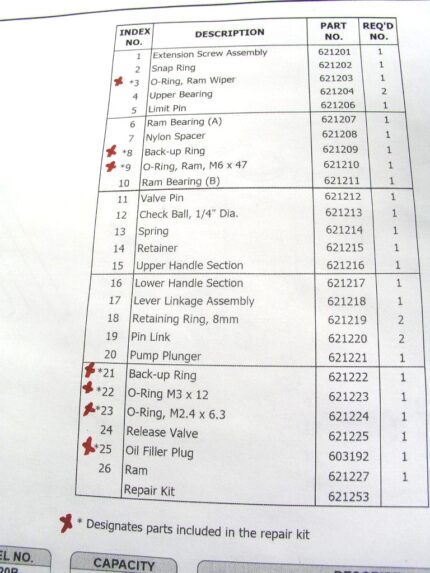 Norco AMH-22 Seal Kit for 20 Ton Bottle Jack